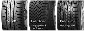 Vous reconnaîtrez les pneus hiver au symbole de flocon sur son flanc (three peak mountain snowflake symbol ). Les pneus hiver disposent de profils de 4 mm d'épaisseur minimum. Si le profil est moins profond, c'est que le pneu est trop usé et il perd alors l'adhérence visée en conditions hivernales.